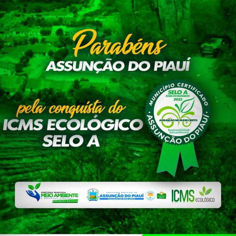 De acordo com resultado atual divulgado pelo órgão de meio ambiente estadual (SEMAR-PI), Assunção do Piauí conquistou a posição de maior destaque no Selo Ambiental do ICMS Ecológico, com CERTIFICAÇÃO A, atingindo 179 pontos.